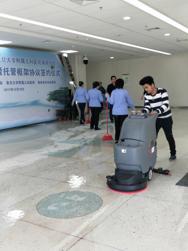海南省妇幼保健院引进静音洗地机,地面清洁效果好,清洁效率高,清洁速度快。